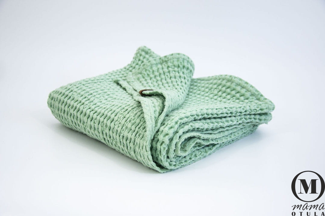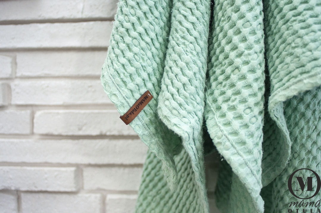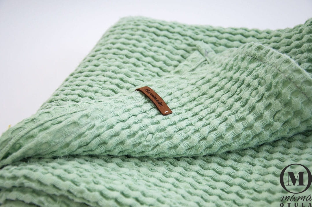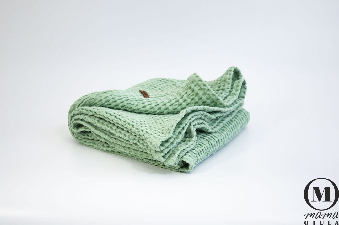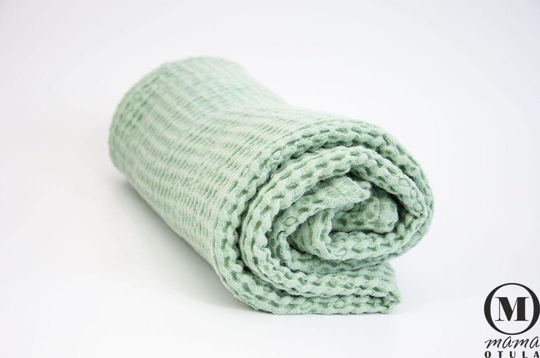 Kocyk dziecięcy sensoryczny, wafel lniany 100X100 cm miętowy
