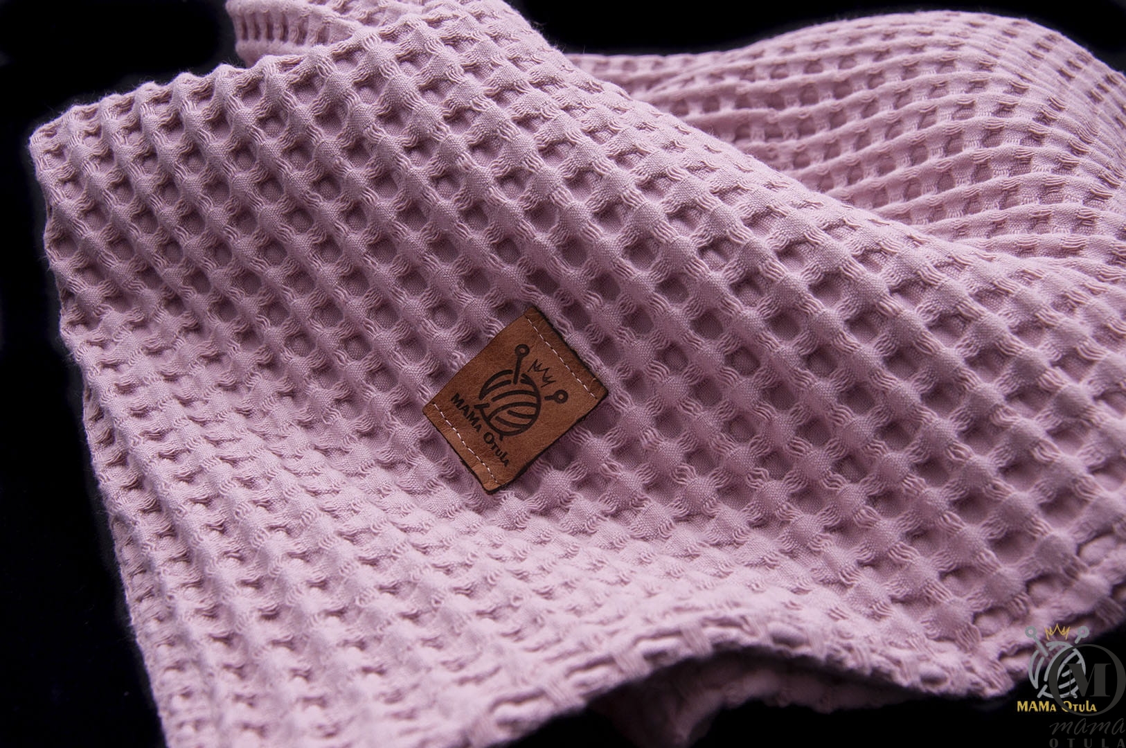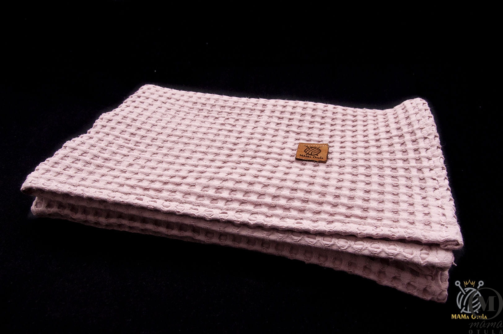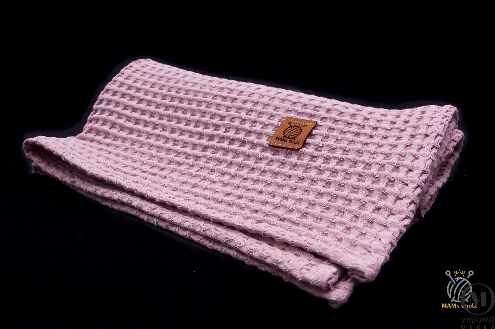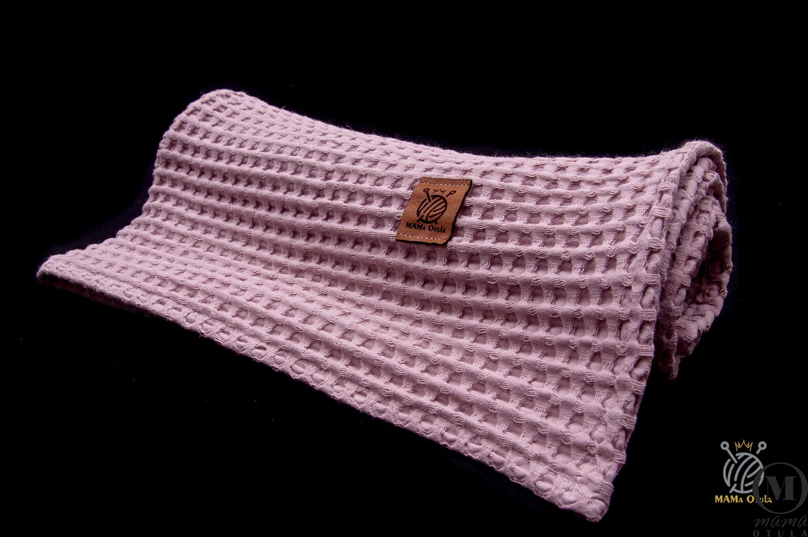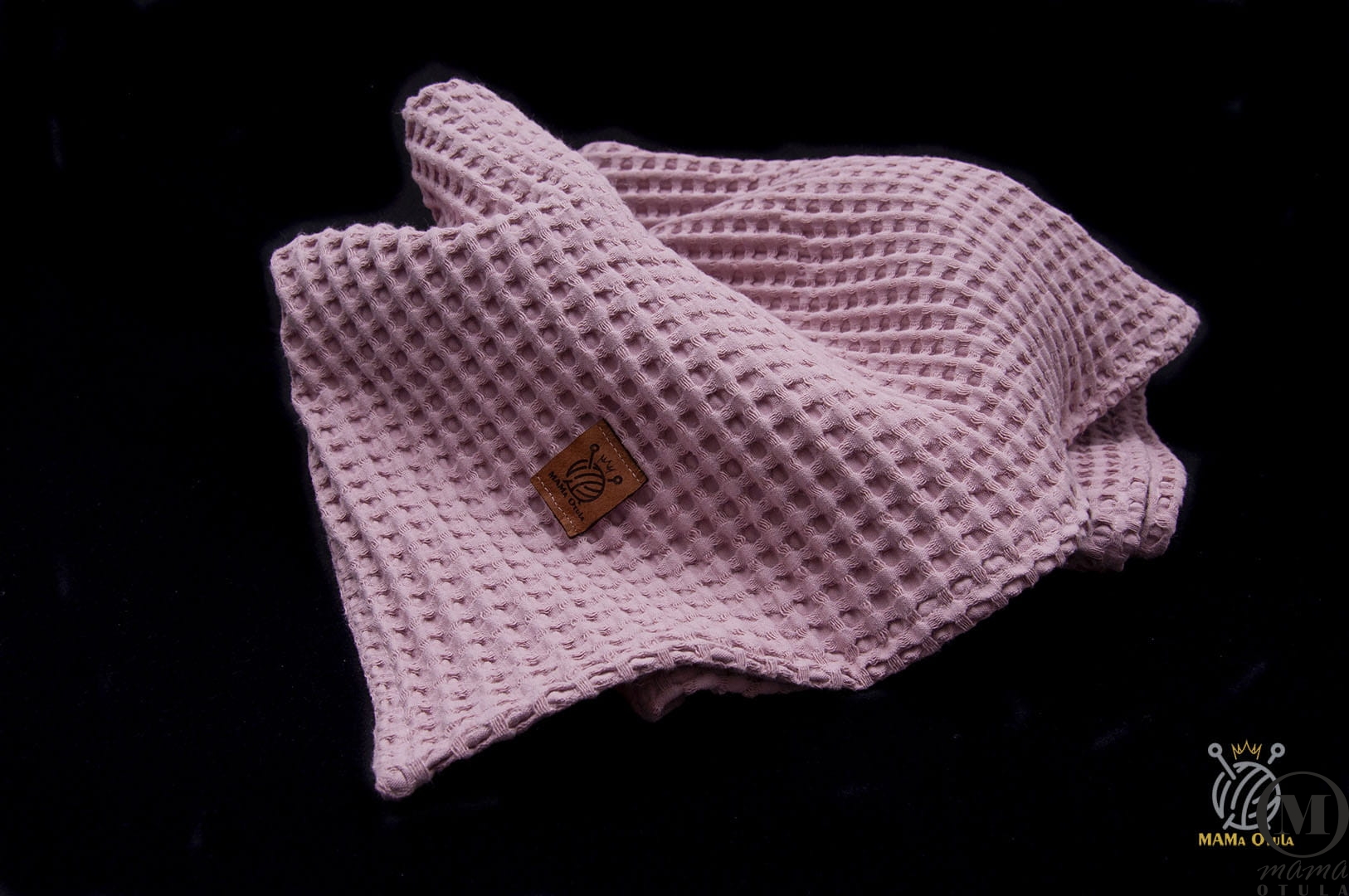 Ręcznie wykonany miękki, bawełniany, wafelkowy kocyk dla Twojego malucha w kolorze brudnego różu.
