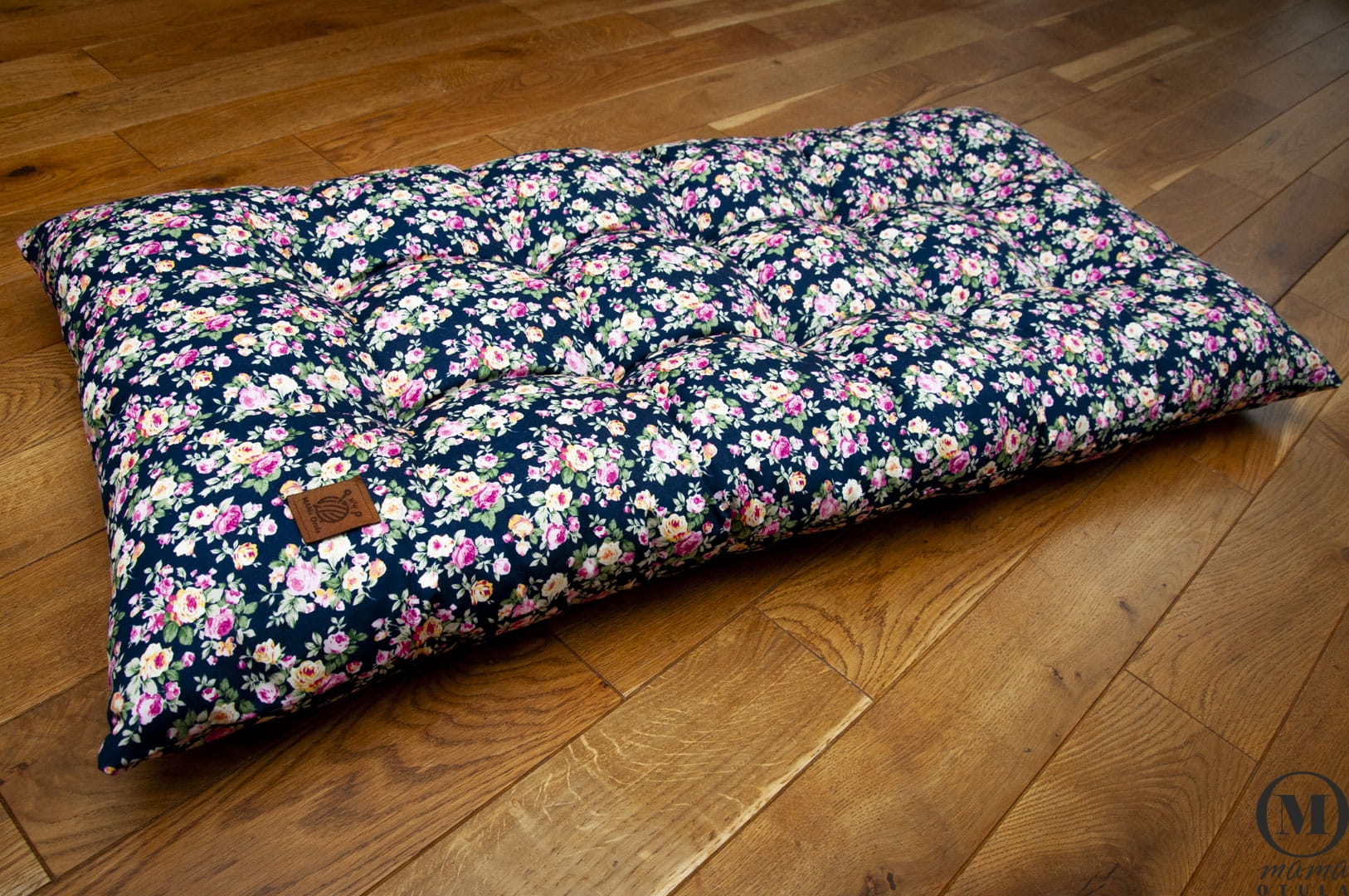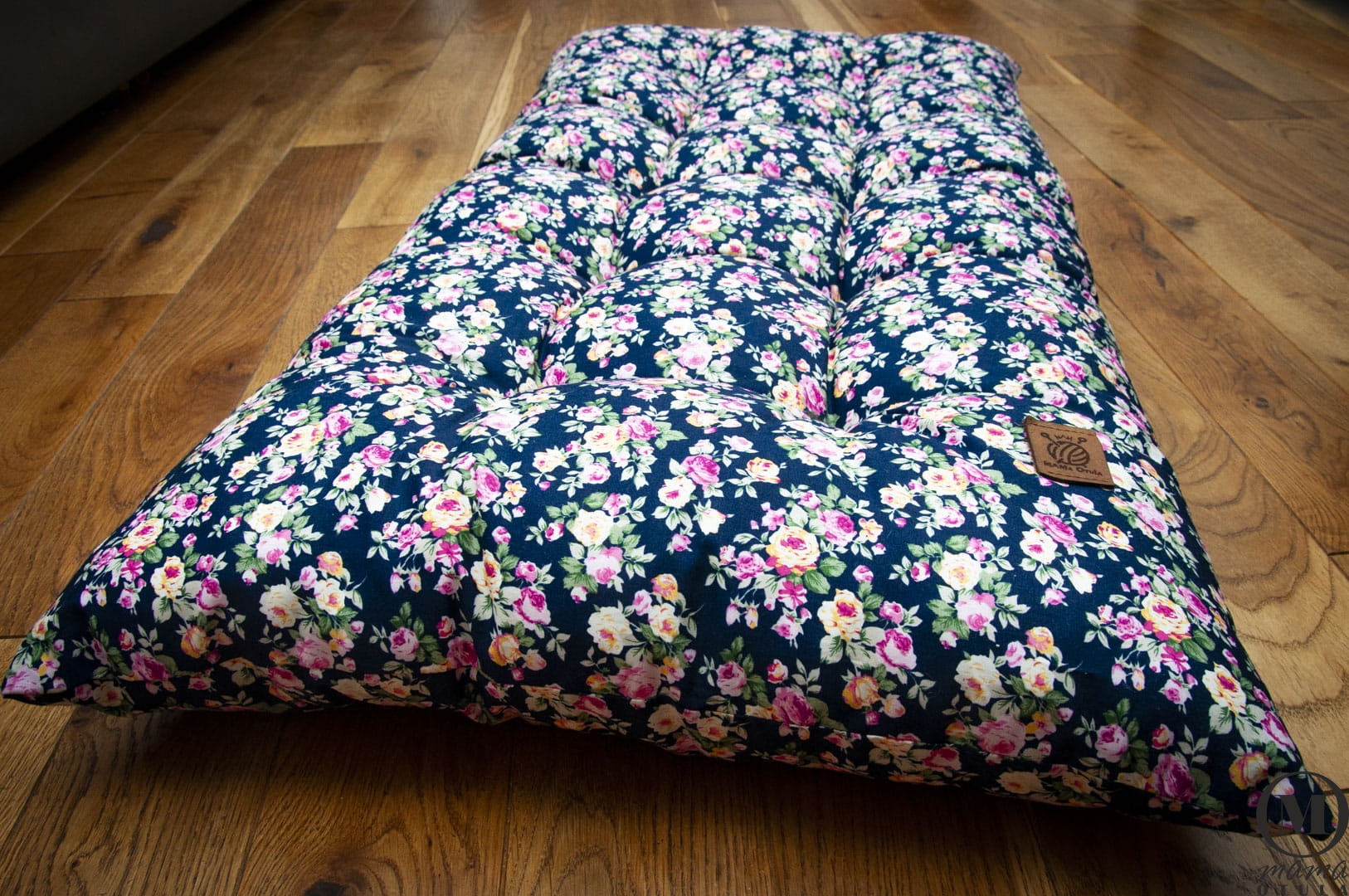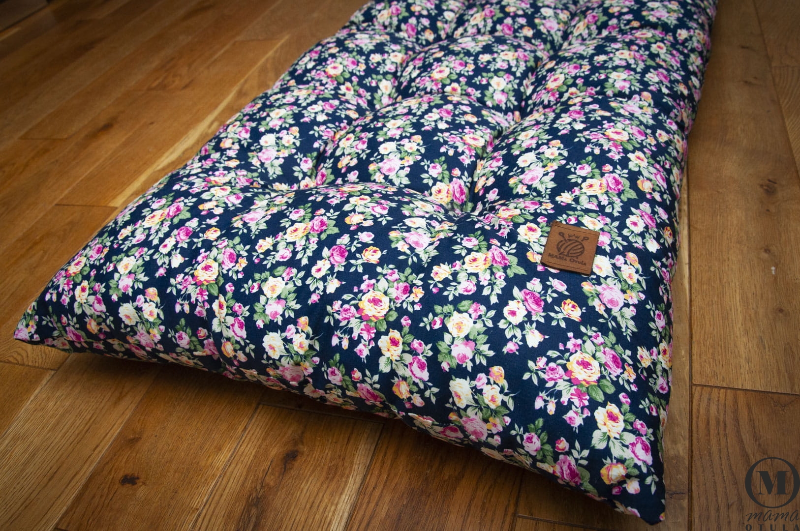 Materac Puf Mata do zabawy dla dziecka - vintage flowers granatowa