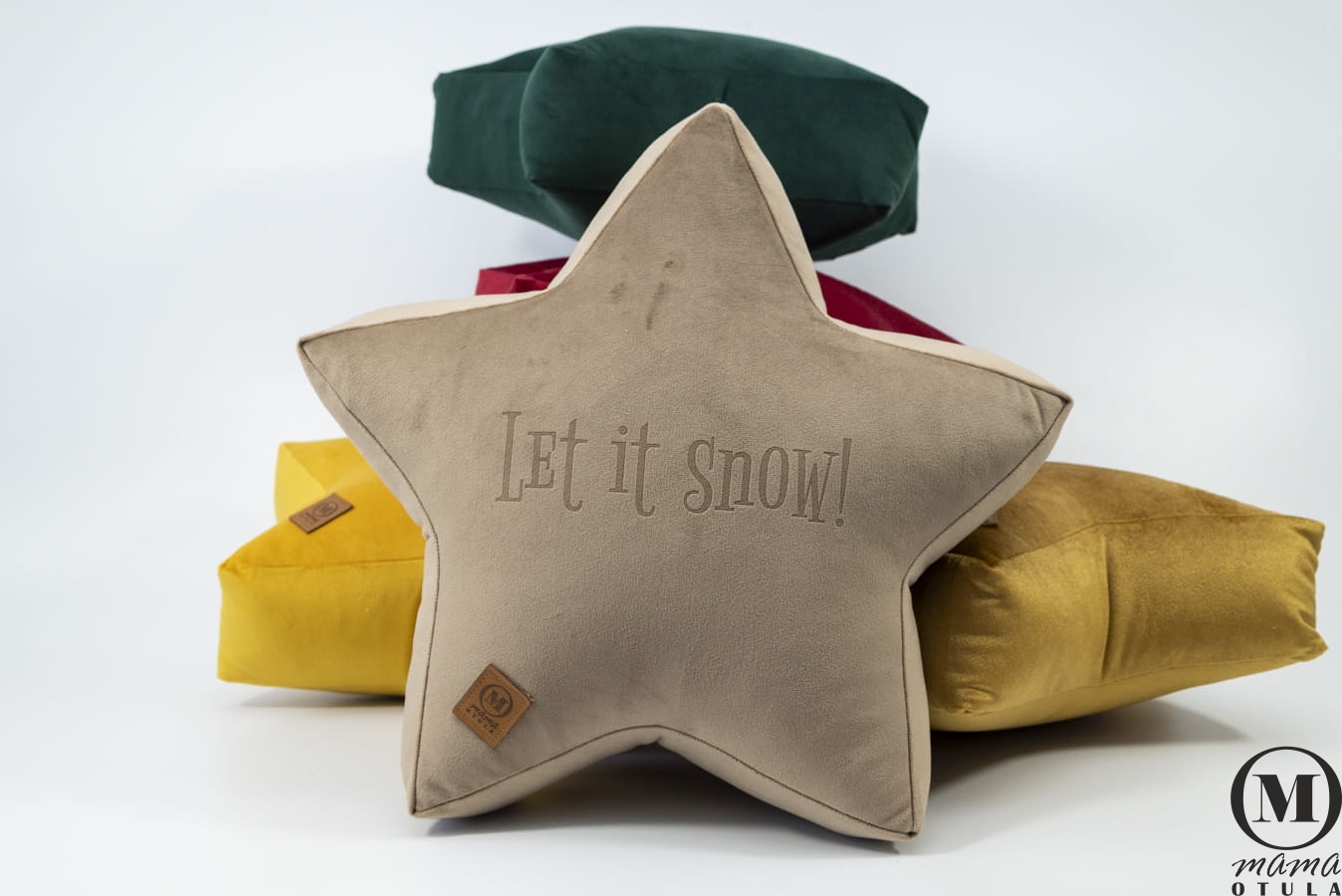Dodaj świątecznego uroku swojemu wnętrzu dzięki naszej poduszce dekoracyjnej w kształcie gwiazdki z napisem „Let It Snow”. Wykonana z miękkiego, przyjemnego w dotyku weluru, stanie się wyjątkową ozdobą salonu, sypialni lub pokoju dziecka.